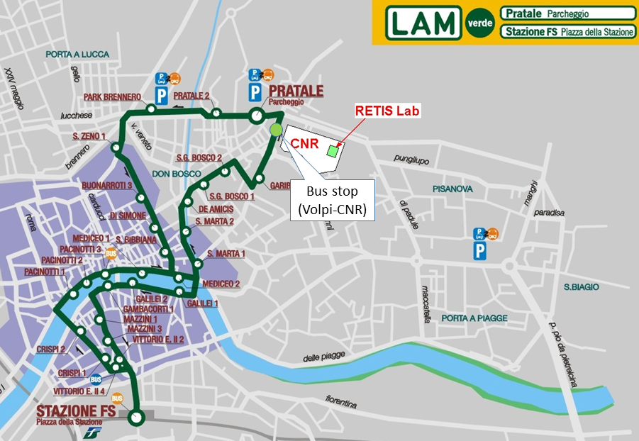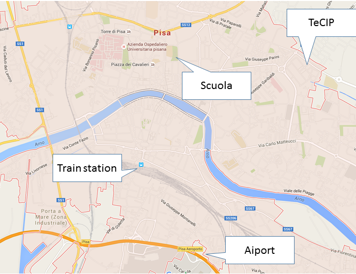 All the Workshops and the Tutorial will be hosted at the RETIS Lab of the TeCIP Institute of the Scuola Superiore Sant'Anna, located in the CNR research area, in Via Moruzzi, 1 (North-Est part of Pisa), which is easily reachable by using the LAM verde ("green").
