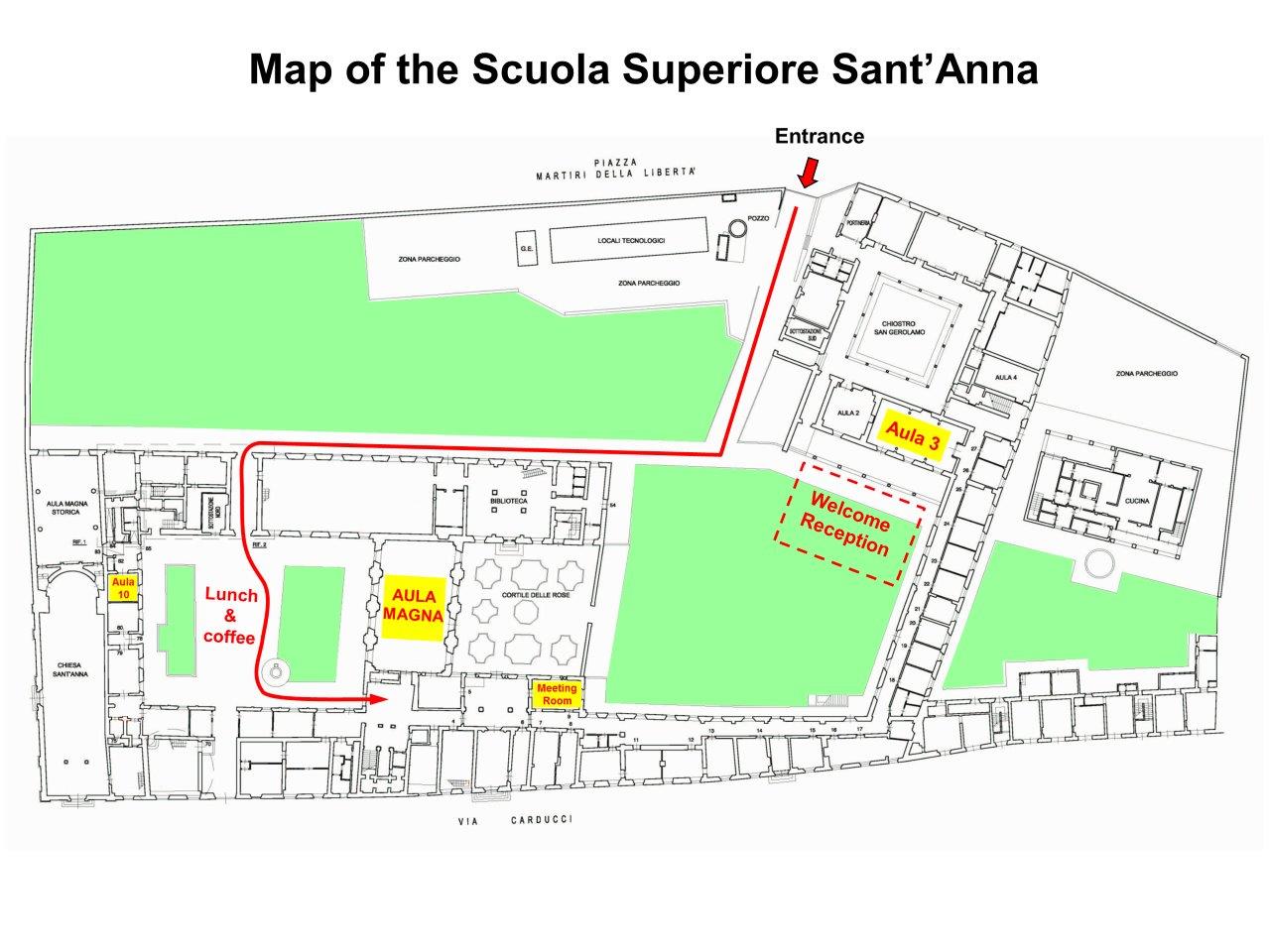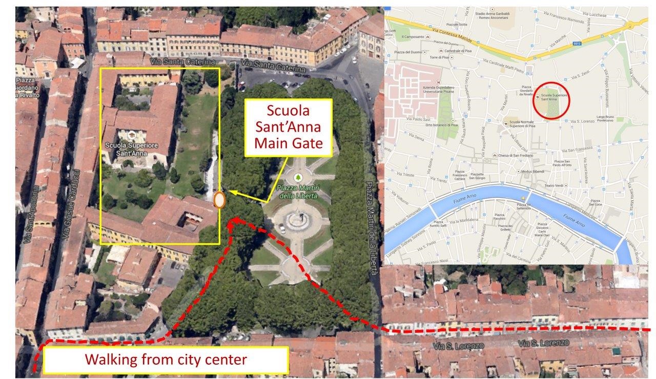The main conference will take place at Scuola Superiore Sant'Anna, in the heart of Pisa. Monday and Friday Tutorials and Workshop will take place in the TeCIP institute in the CNR area.